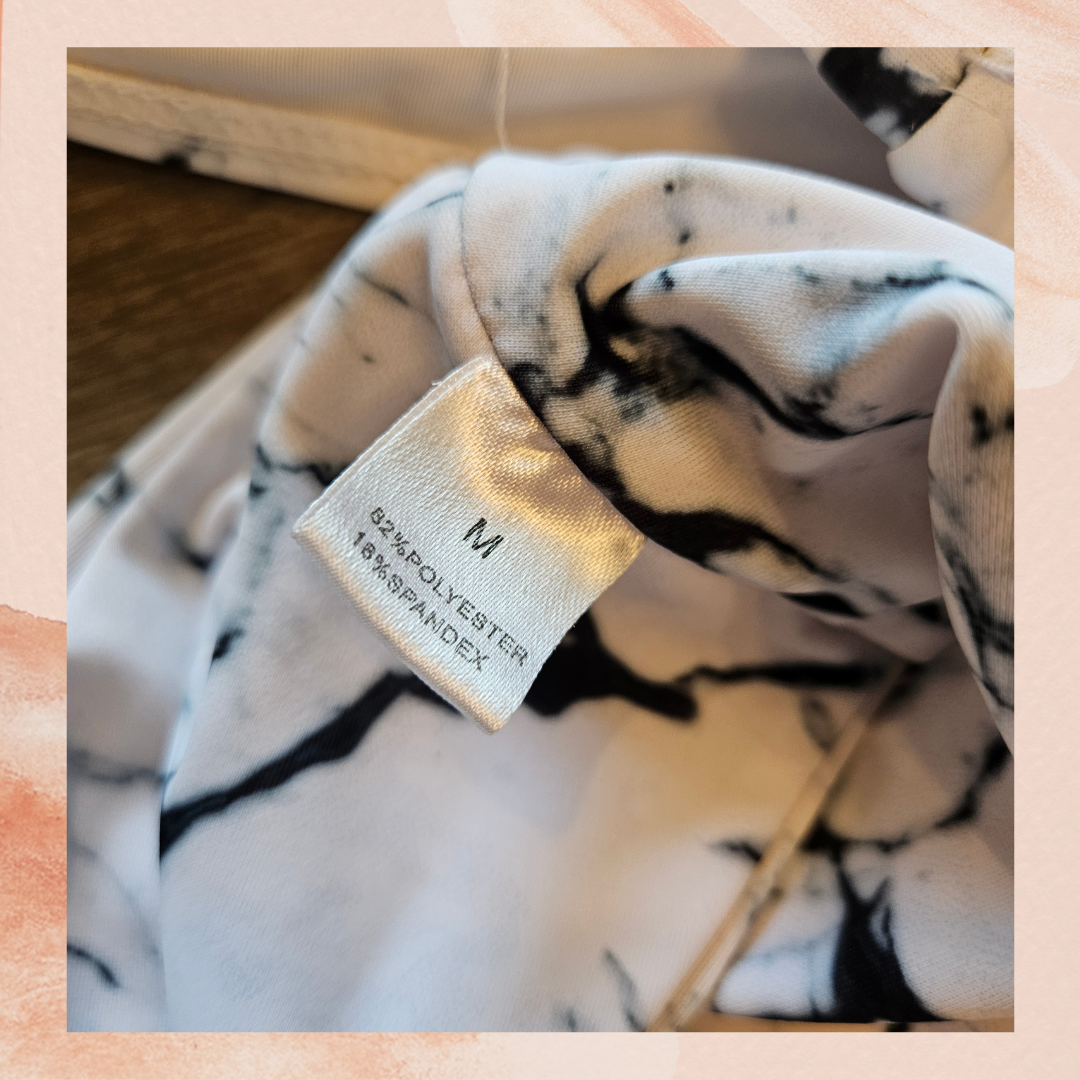 NWOT. White & black marble print, high-cut, bandeau bikini swimsuit. Complete with removable pads. Missing hygiene strip.