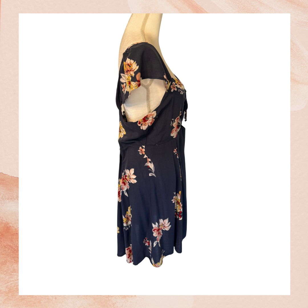 Navy Floral V-Neck Cut-Out Mini Dress (Pre-Loved) Size XL