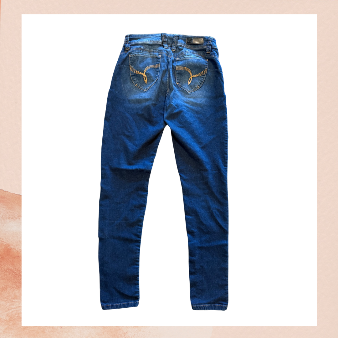Pre-loved. Dark wash, stretchy, skinny jeans. Complete with faux front pockets, two back slip-pockets and button zip-fly closure.